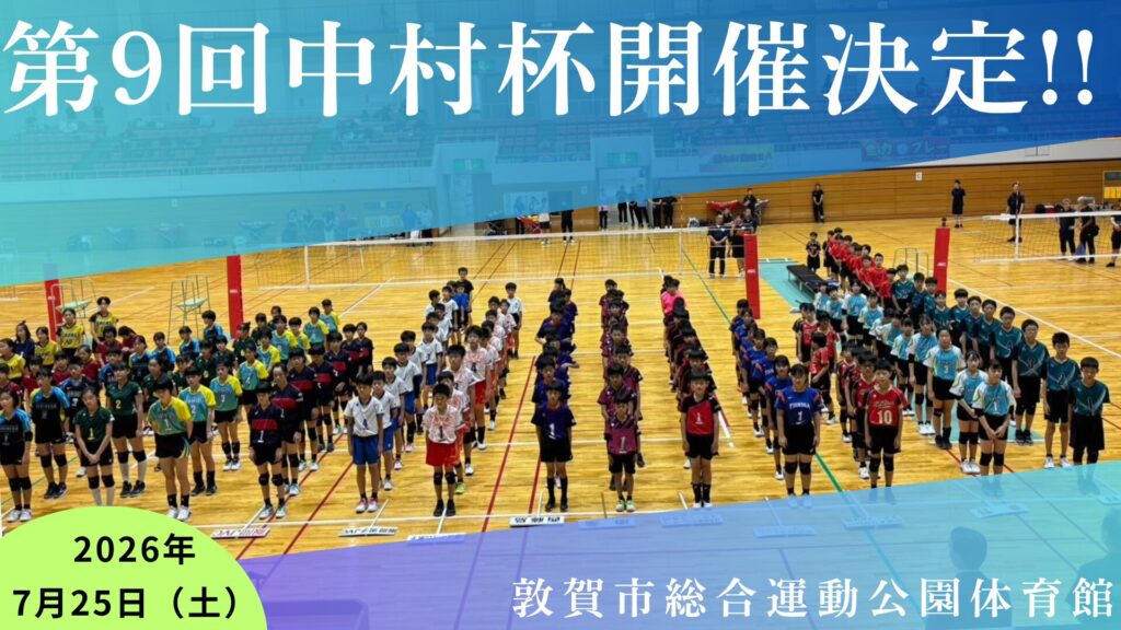 🏐✨ 第8回中村杯出場チーム決定! ✨🏐 今年も多くのご応募・ご関心をいただきありがとうございました。第8回 敦賀市中村杯小学生バレーボール大会の出場チームが決定しました! 🔽 出場チーム一覧(順不同) 全16チーム!各 […] - 【開催日決定】第8回 敦賀市中村杯小学生バレーボール大会